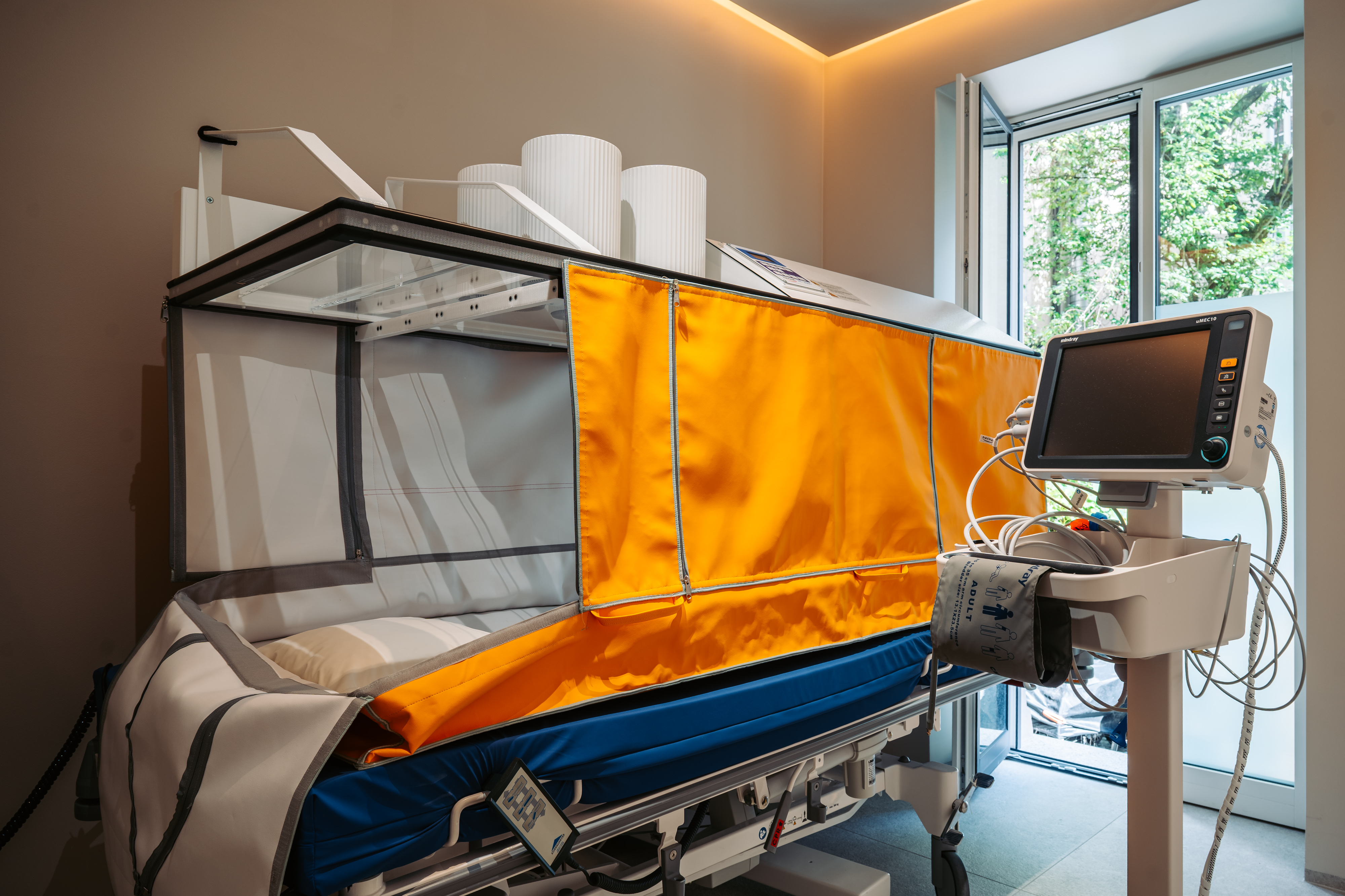 Die Ganzkörperhyperthermie ist ein physikalisches Verfahren, das eine kontrollierte Erwärmung des Körpers auf ca. 38,5-39,5 °C ermöglicht. Es wird in spezialisierten Geräten durchgeführt.